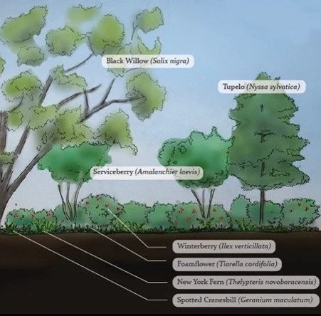 “Each Layer in a forest has a particular ecological function, Landscape designs should begin with keystone species like oaks, cherries, willows, birches, and poplars. Once those are in place, more layered plants can be added to create a 3D mini forest that bustles with life,” Heather McCargo of the Wild Seed Project told us.